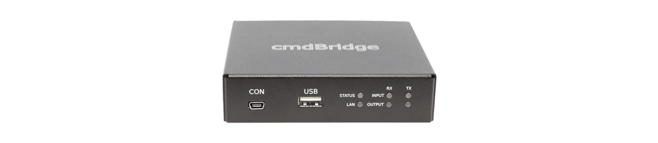 cmdBridge is an intelligent command protocol translator. It performs real-time translation between devices that speak different command languages, including physical interface conversion. Examples of such devices include control systems like Crestron, AMX, and Extron, as well as projectors and displays.